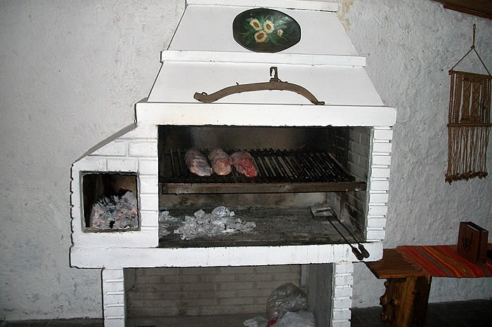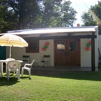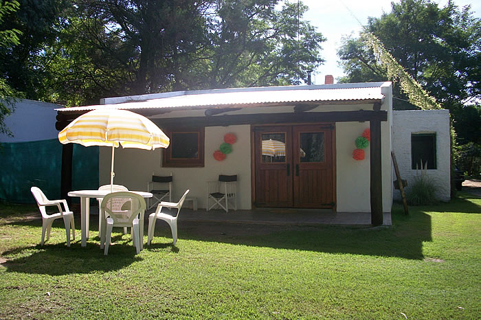 Una de las primeras viviendas de Sierra de la Ventana, de adobe, reciclado y ampliado. Salón principal, rancho con parrilla, cocina y baño.